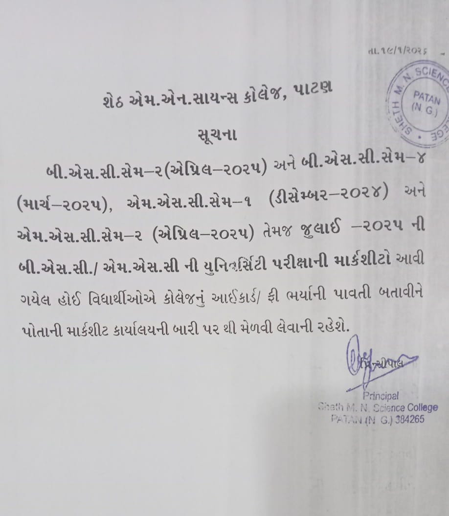 B.Sc & M.Sc ની માર્કશીટ મેળવવાં અંગે